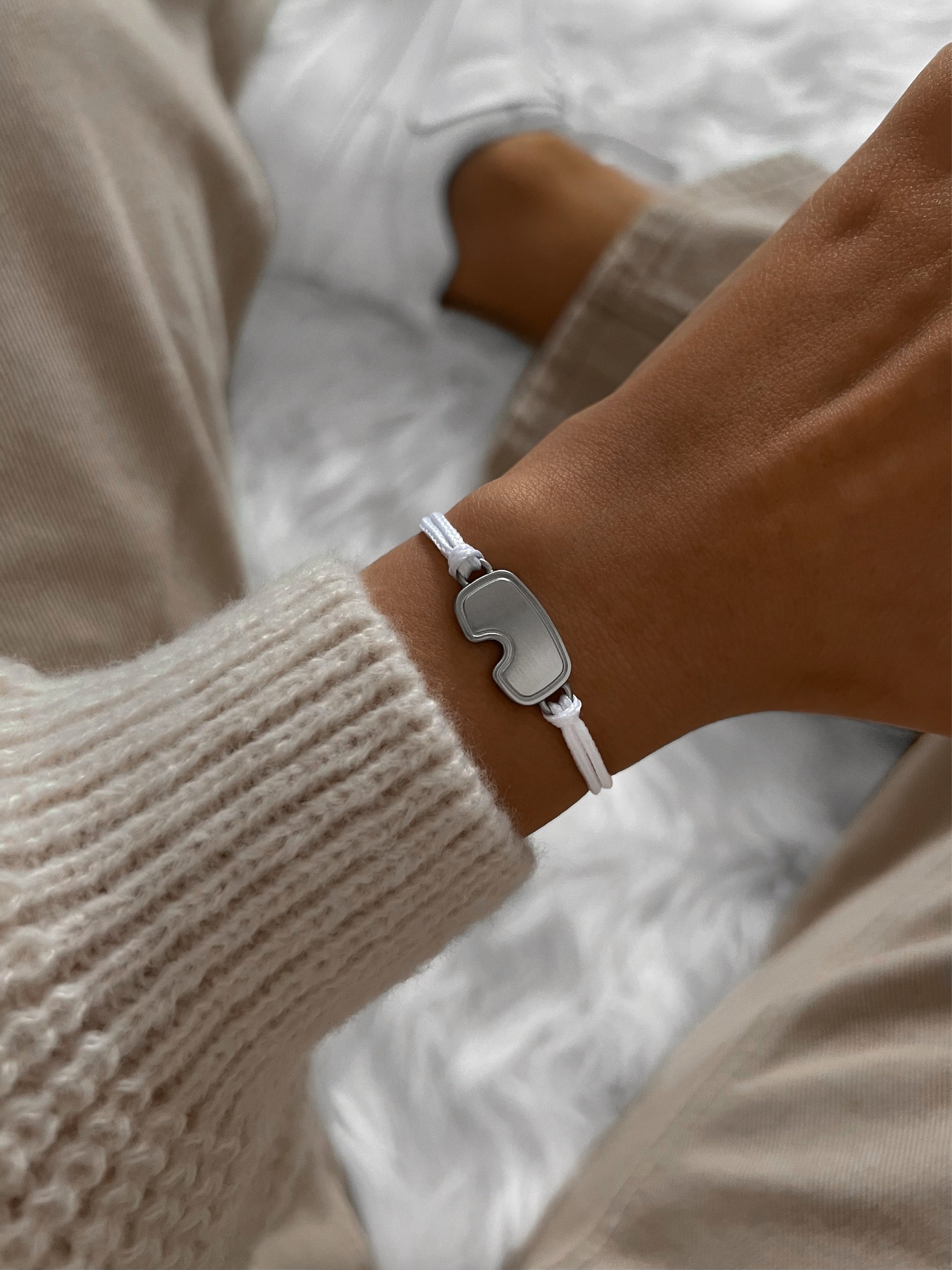 Largo: El largo total de la pulsera son 24 cm. Tiene un nudo ajustable que la hace fácil de sacar y colocar.