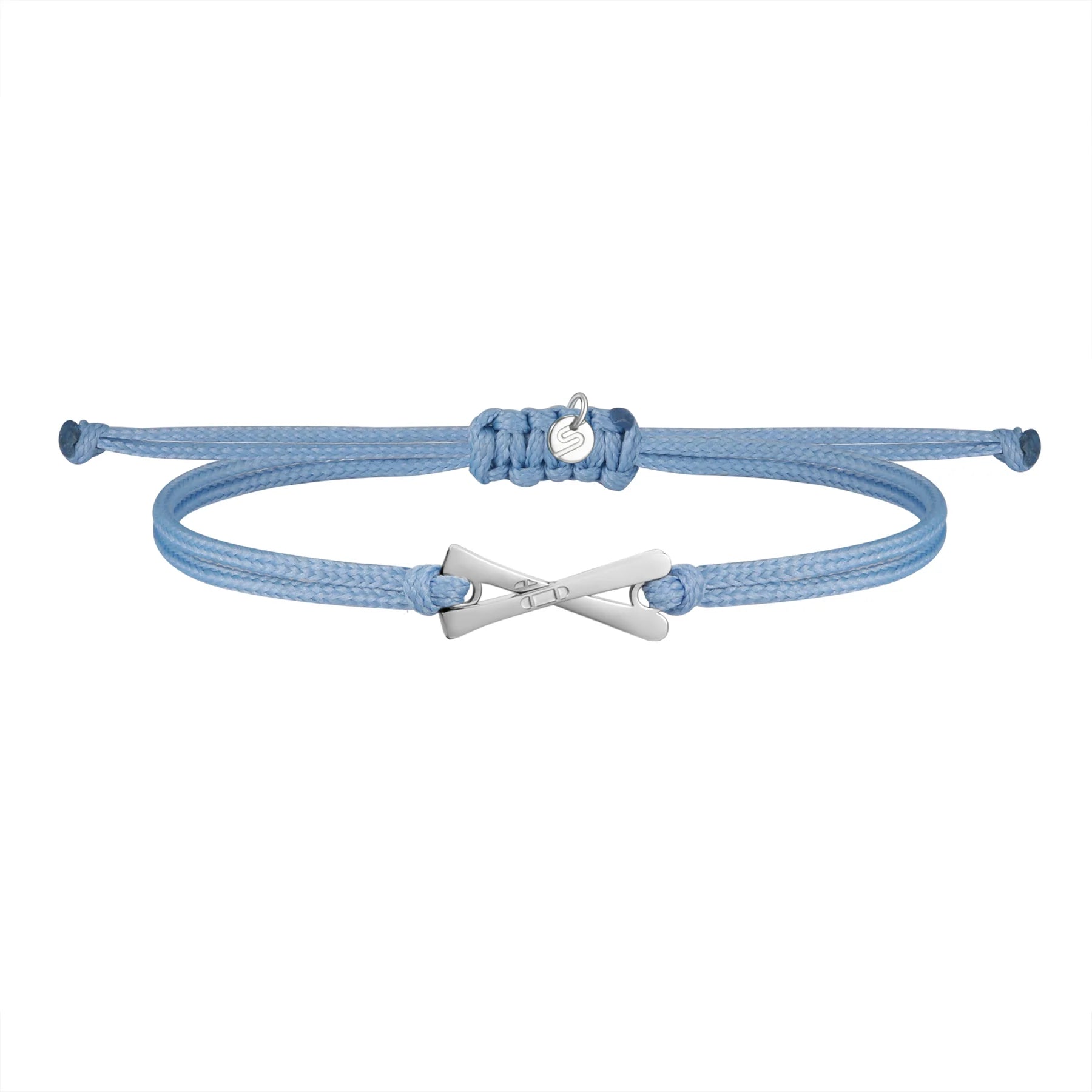 Descripción: Cordón celeste, esquís plateados